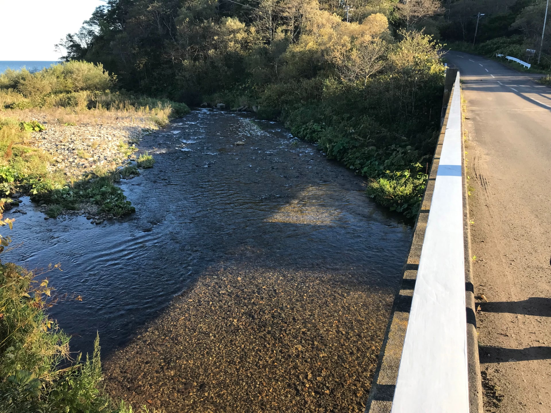 羅臼市街を流れる川。おじろばしから観察しやすい。 おじろばしからウライまで距離があるので、河川敷に下りて散策するとよさそう。 駐車場は近辺の港や道の駅を利用できる。